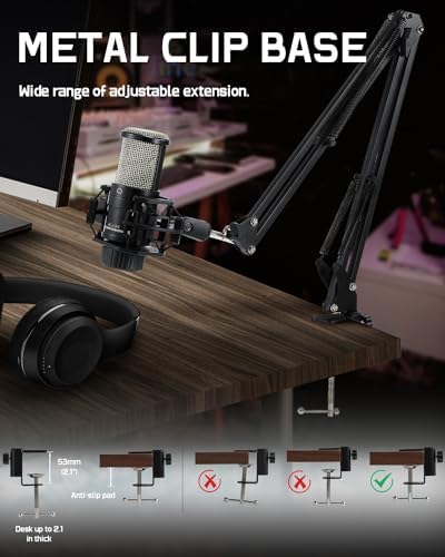 • Professional-Grade Audio: 25mm large-diaphragm condenser capsule delivers crystal-clear, high-resolution sound.